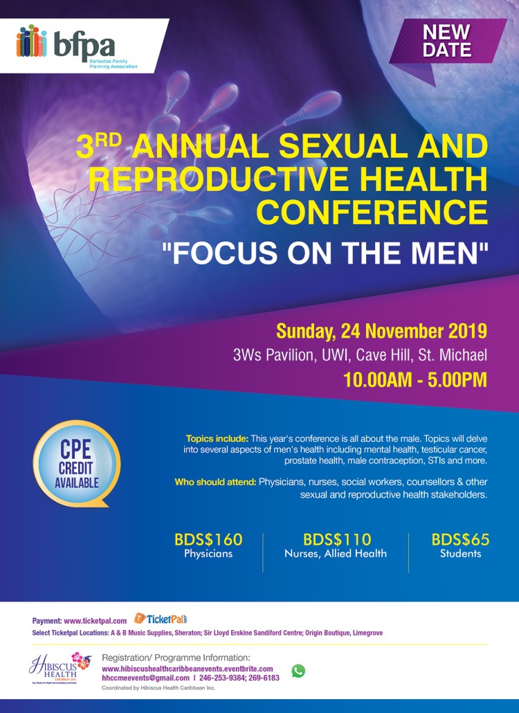 The Barbados Family Planning Association presents its third annual medical conference on Sexual and Reproductive Health in the Caribbean. The goal of this conference is to provide an opportunity for information sharing of current sexual and reproductive health practices, psychosocial perspectives, patient considerations and barriers to care.