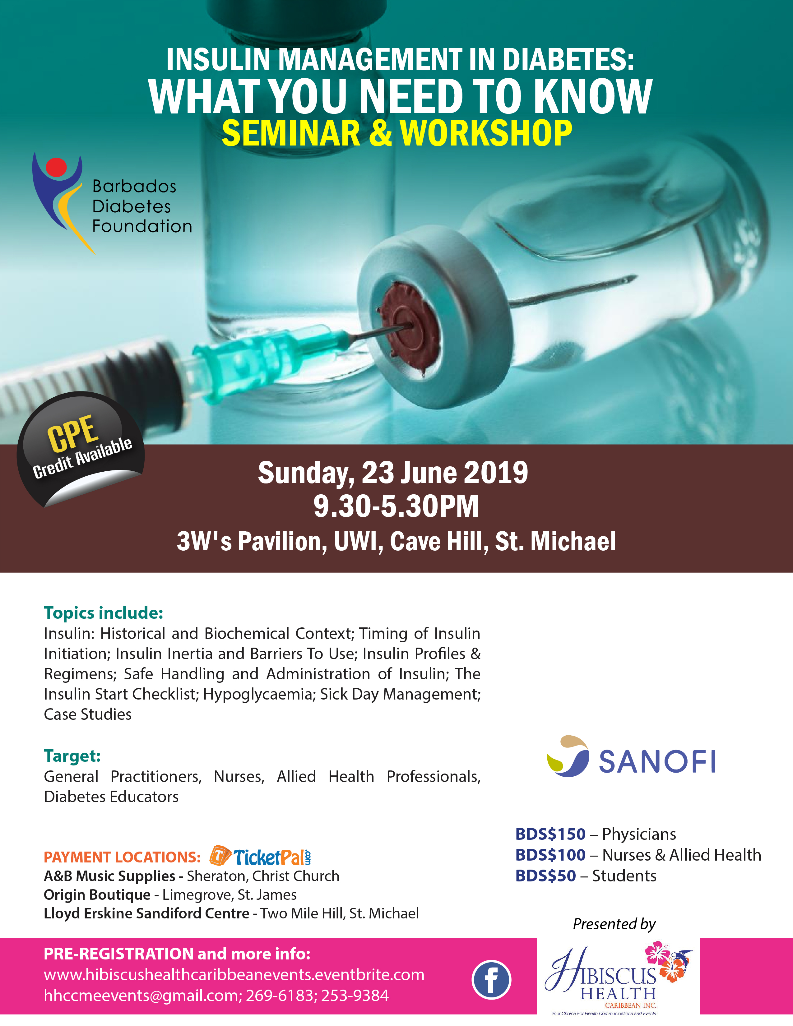 www.hibiscushealthcaribbeanevents.com or hhccmeevents@gmail.com, 246-269-6183/ 253-9384