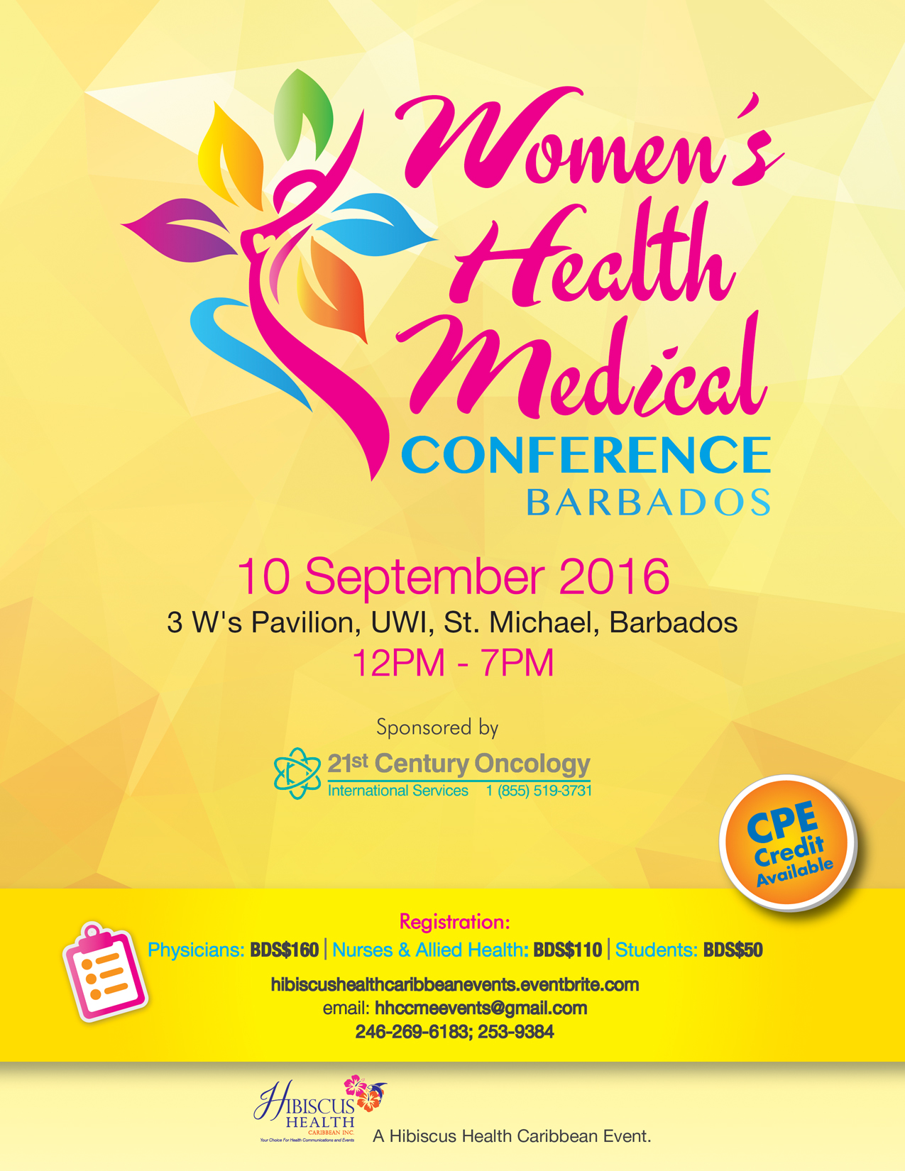 Hibiscus Health Caribbean Inc is pleased to bring back the Women’s Health & Medical Conference scheduled to be held on Saturday, 10 September 2016, 12PM-7PM at the 3 W’s Pavillion at the University of the West Indies. This event features a potpourri of topics designed to address common women’s issues in both the GP practice and the Specialist Practice giving doctors and allied health professionals greater insight to address these issues, be aware of treatment options, prescribe appropriately, work with a multidisciplinary team and refer.