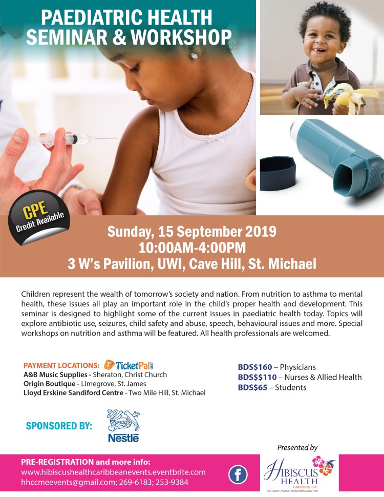 www.hibiscushealthcaribbeanevents.eventbrite.com or hhccmeevents@gmail.com; 246-253-9384/ 269-683